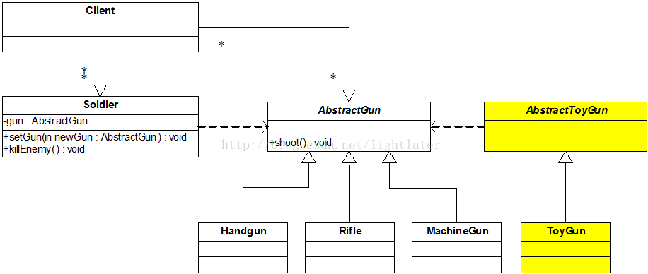 如果有一把玩具枪(ToyGun),该如何实现?注意:玩具枪不可以射击。