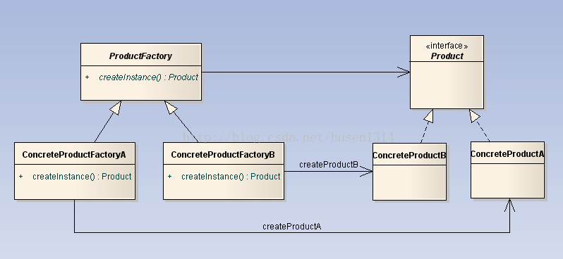 在工厂方法中,如果要扩展功能,只需在ProducFactory下增加类工厂即可,但是它对于修改是关闭