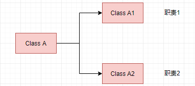 A负责两个不同的职责:职责P1,职责P2。当由于职责P1需求发生改变而需要修改类T时,有可能会导致原本运行正常的职责P2功能发生故障。也就是说职责P1和P2被耦合在了一起。所以需要将类A分解为A1、A2,使A1、A2分别负责职责1、职责2,两者互不影响。