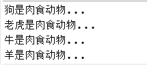 System.out.println(animal + "是肉食动物...");