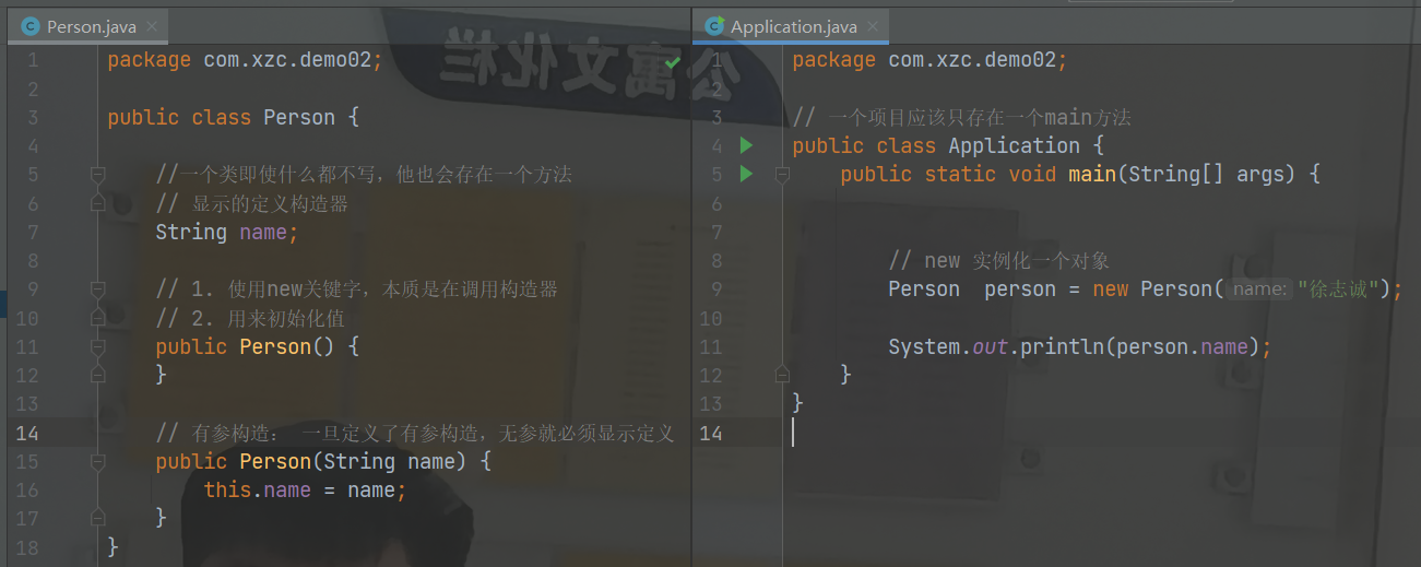 必须使用new关键字创建对象,构造器 Person xzc = new Person()