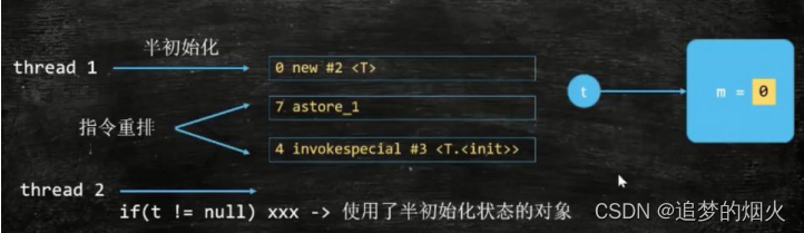 此时指令可能发生重排序,先把半成品对象引用地址赋给引用变量