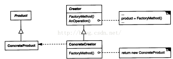 • Creator依赖于它的子类来定义工厂方法,所以它返回一个适当的 ConcreteProduct实例