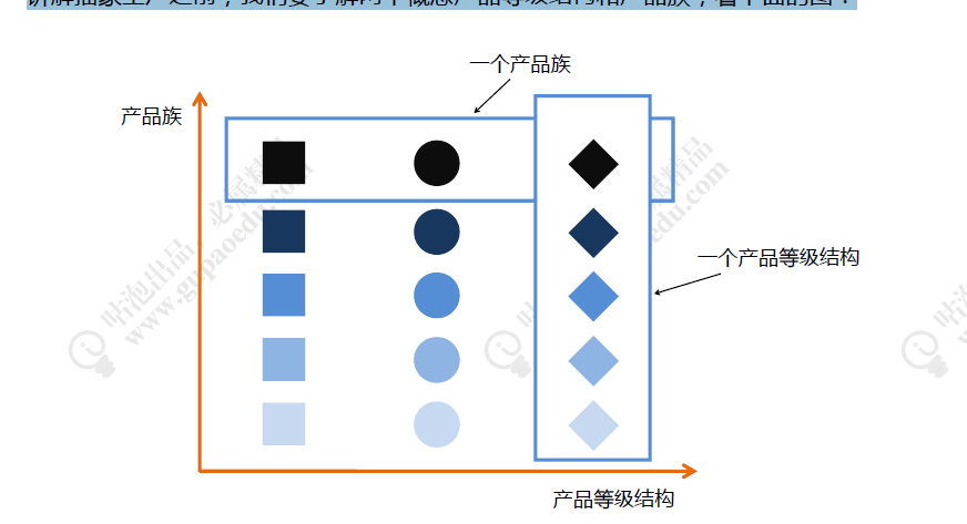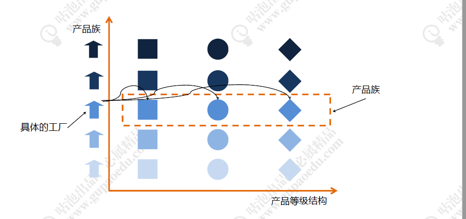 从上图中看出有正方形,圆形和菱形三种图形,相同颜色深浅的就代表同一个产品族,
