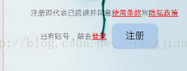 android:text="注册即代表已阅读并同意使用条款和隐私政策" />