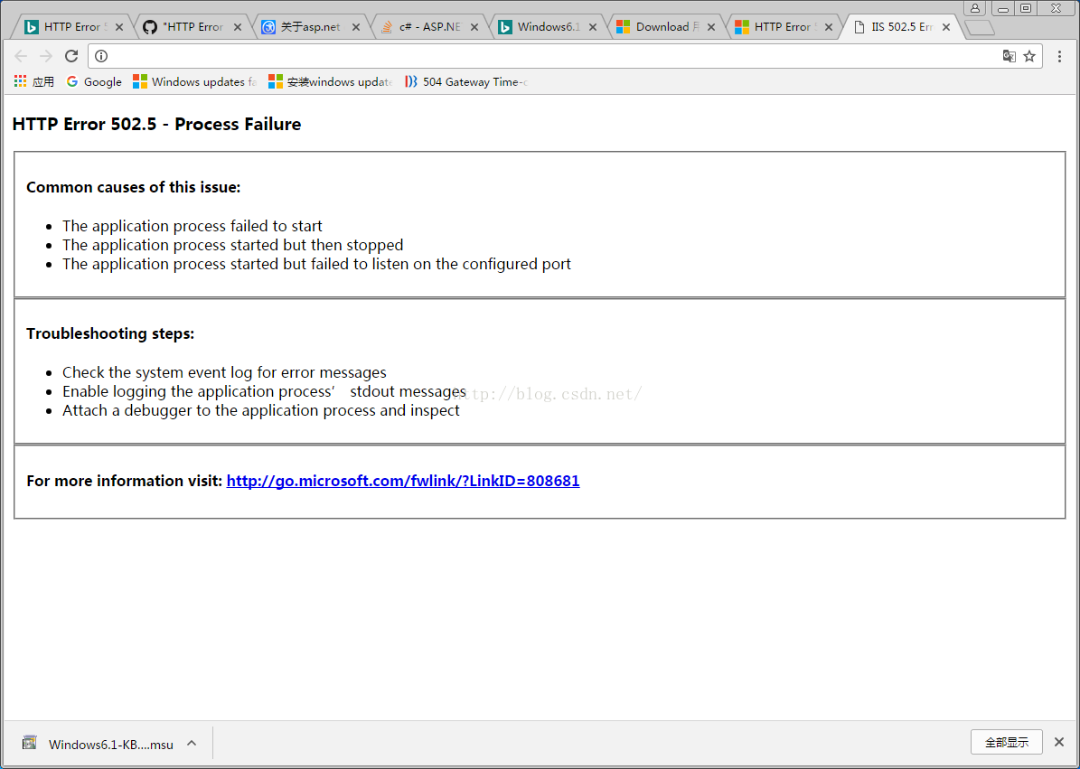 以上就是聪明香烟最近收集整理的关于asp.net core部署到iis中出现 HTTP Error 502.5 - Process Failure的问题的全部内容,更多相关asp.net内容请搜索靠谱客的其他文章。