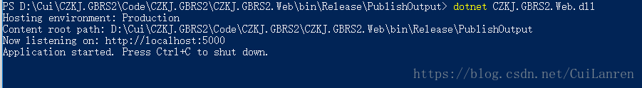 这时你访问5000端口先看一下程序本身有没有错误,如果页面正常我们打开IIS的系统日志,如果有错误的的话错误的信息会在命令行中显示出来,我们可以根据命令行中的提示来找到错误信息,再者我们可以打开IIS的错误日志