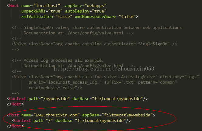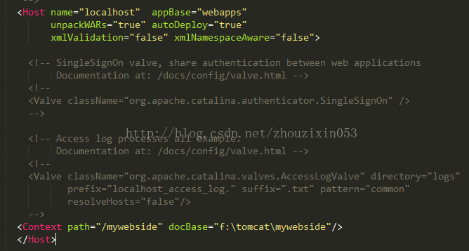 在tomcat的conf目录下的server.xml的<Host>节点中添加<Context>标签
