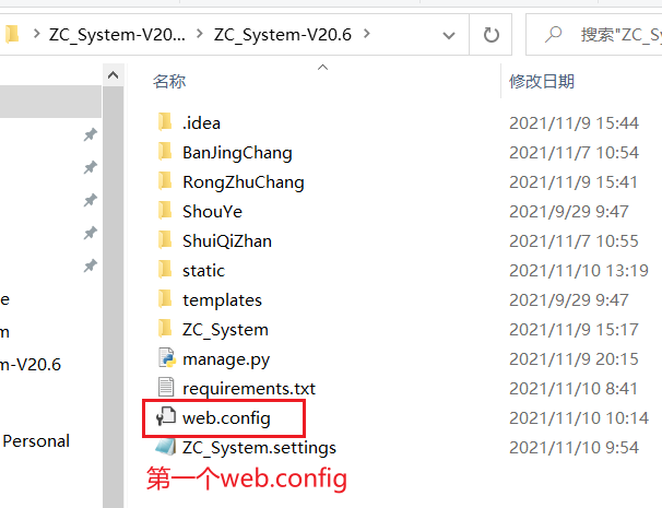 2、<add key="PYTHONPATH" value="C:UsersyangzDesktopZC_System-V20.6_11-09ZC_System-V20.6" />, (这里跟manage.py同一目录)