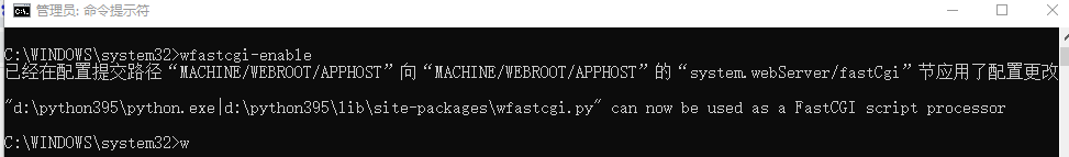 //启动wfastcgi,, 停止命令为:wfastcgi-disable