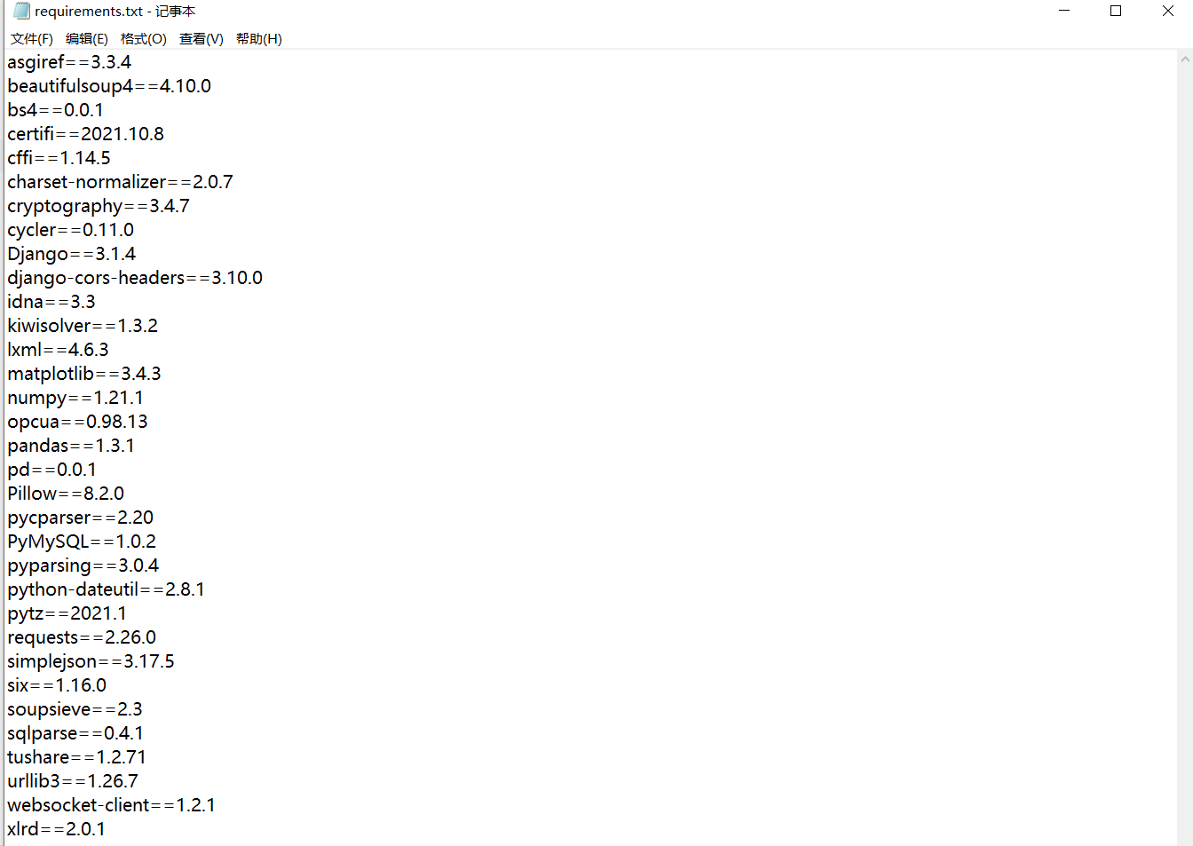 pip install -r requirements.txt //文件requirements.txt为上一步cmd命令中生成