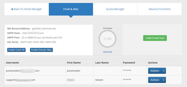 域名邮箱配置也很简单,只需要三步就可以完成类似support@domainname.com的企业邮箱配置。