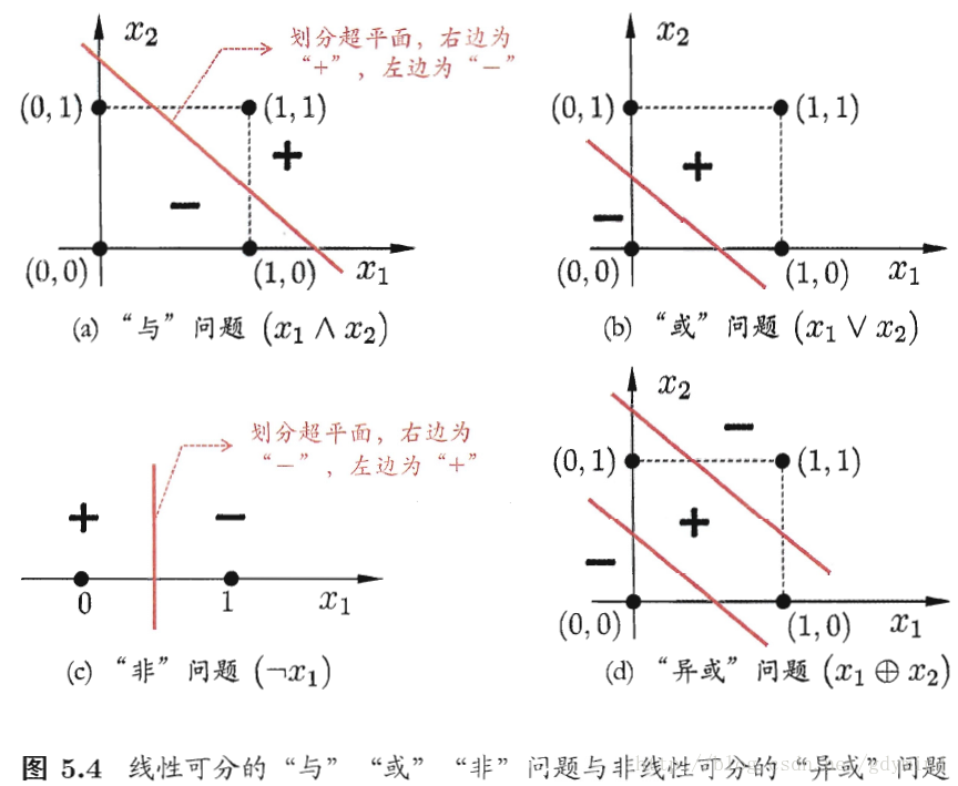 - 感知机只有输出层神经元进行激活函数处理,即只有一层功能神经元(functional neuron)。
