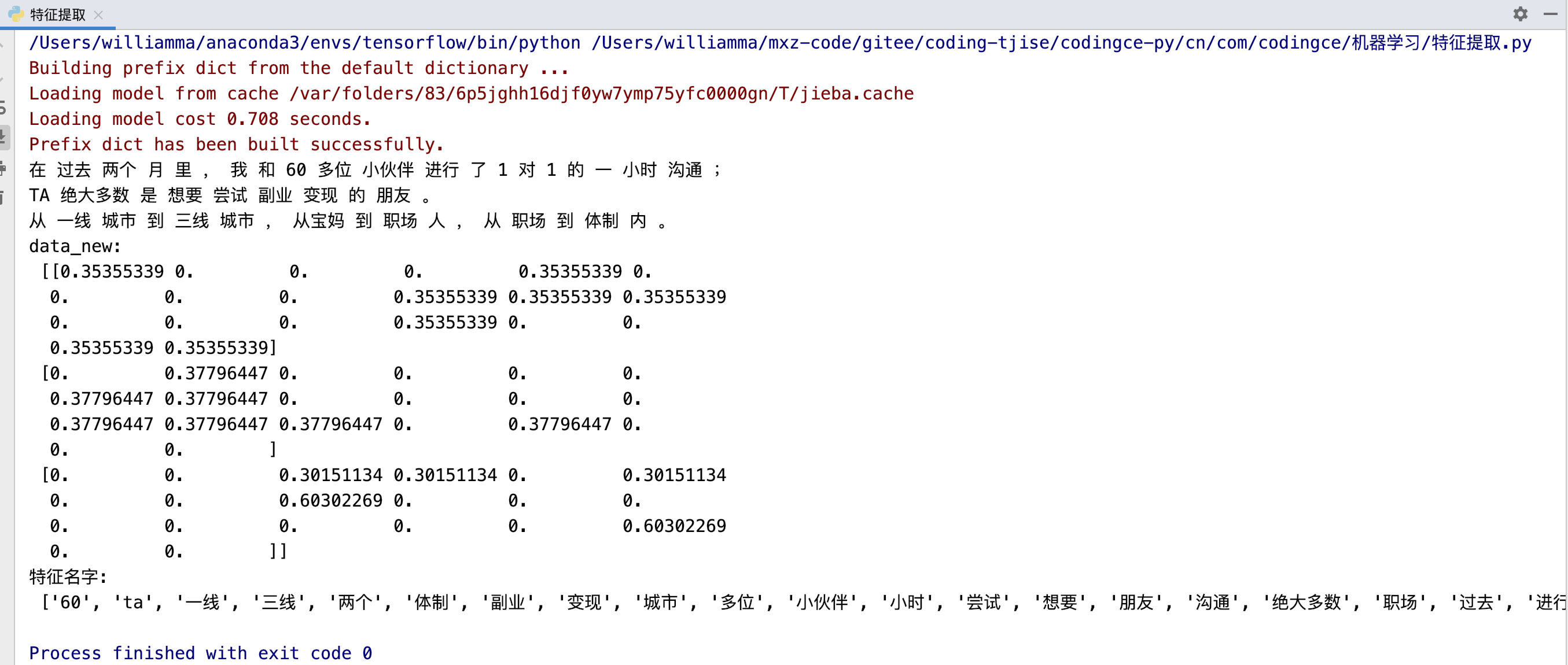 中文文本特征值抽取