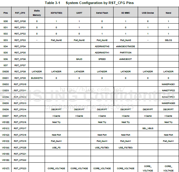 根据UT4418原理图了解到SD0-----SD6对应IO的高低电平,将其与表3-1对照初步确定为SD MMC 启动方式,