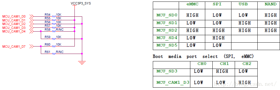 表3-1中还有部分引脚结合下图和表3-2确认哪种方式为第一启动模式
