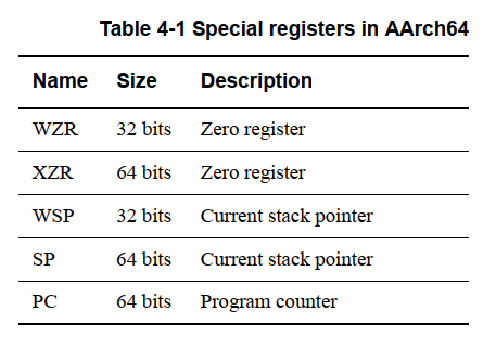 1 AArch64特殊寄存器