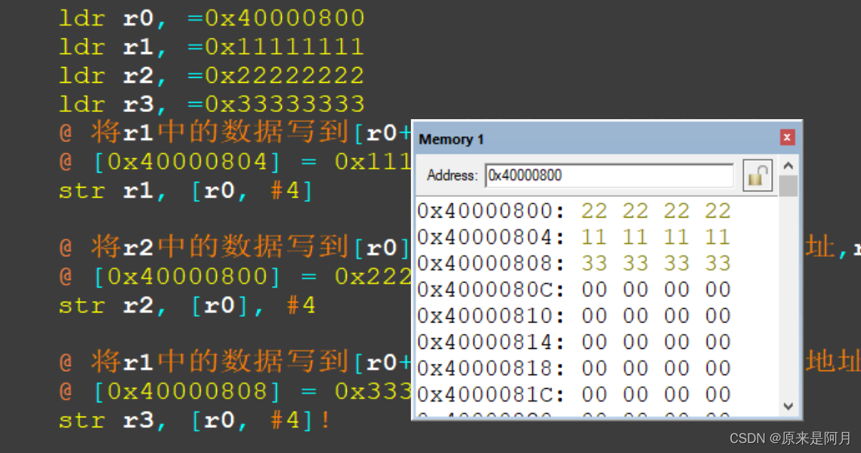 @ [0x40000800] = 0x22222222 , r0 = 0x40000804