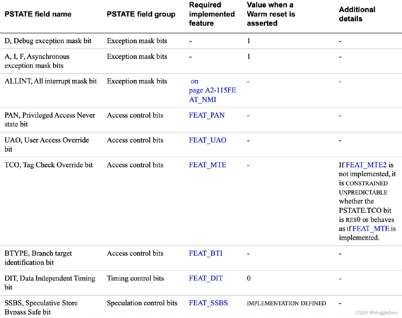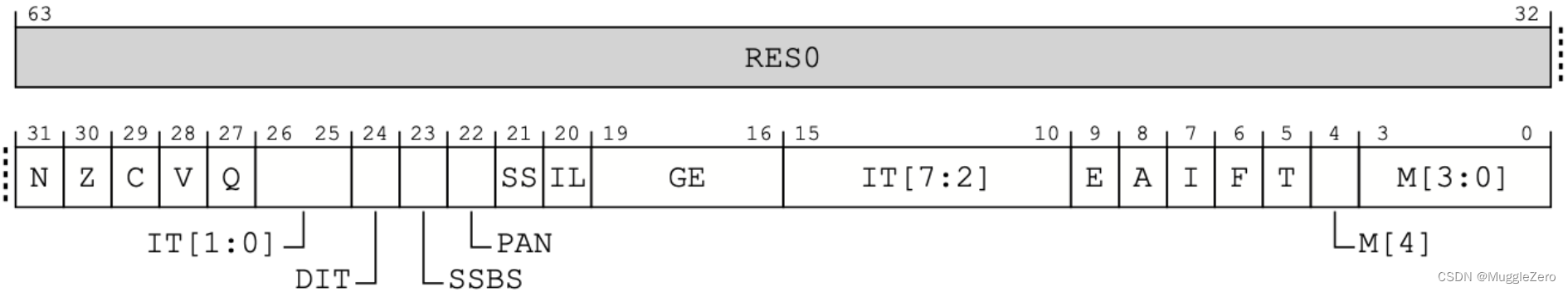 AArch64的处理器状态或PSTATE字段有以下定义: