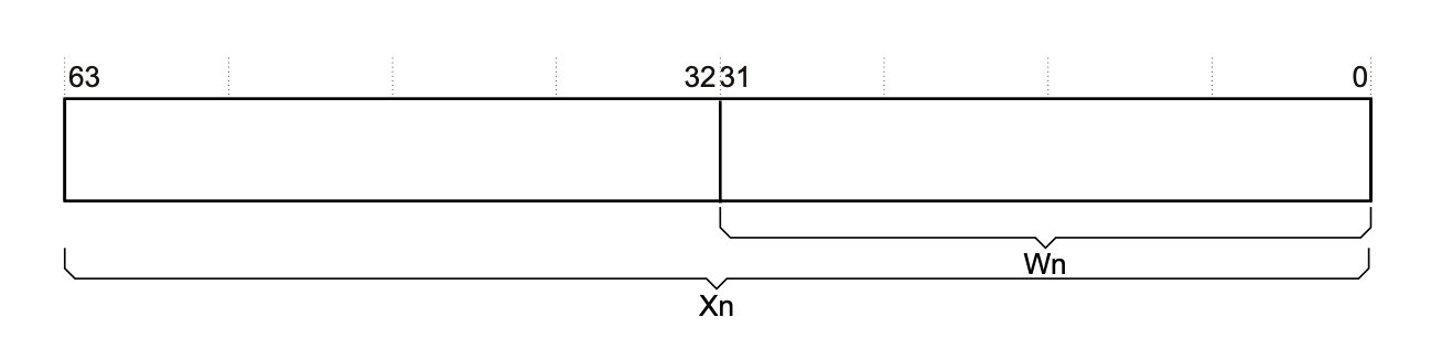 AArch64执行状态提供了31×64位的通用寄存器,可以在任何时候和所有异常级别下访问。每个寄存器的宽度为64位,它们通常被称为寄存器X0-X30。