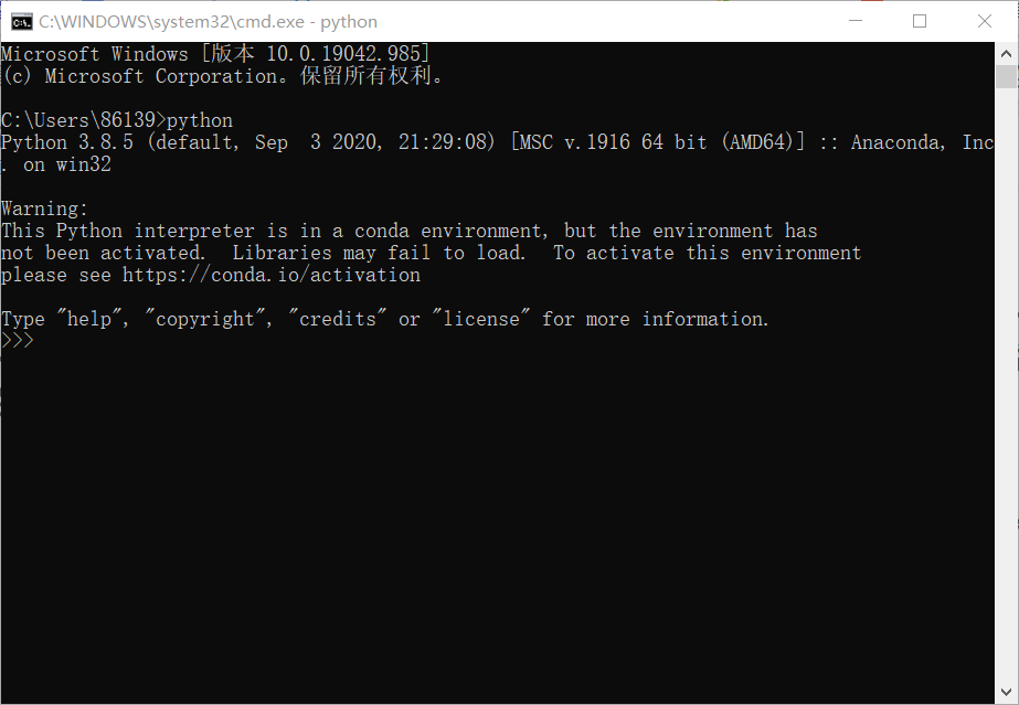 第一步:打开命令行窗口,输入python