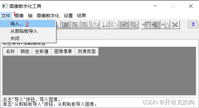 导入后出现下面的界面,在图片上,有四条直线。单击直线,后移动,使线与图片的坐标轴重合。在右侧对话框中的Axis Value 栏输入始末值,对横纵坐标的范围进行赋值。