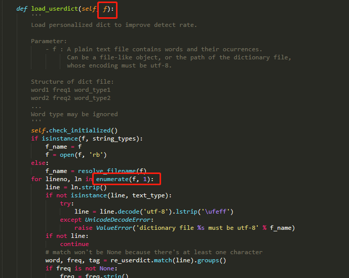 2.jiaba的字典也可以直接传入set形式,因其源码书写并不规范化: