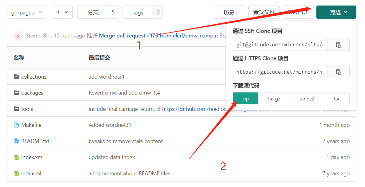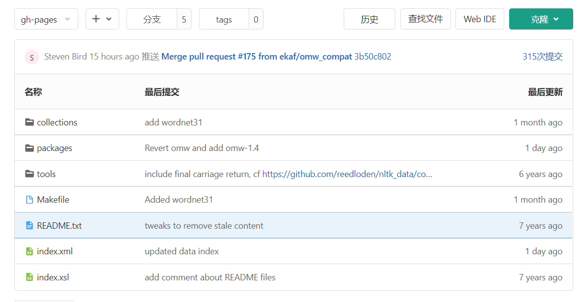 https://gitcode.net/mirrors/nltk/nltk_data?utm_source=csdn_github_accelerator 进入网站后是这样的: