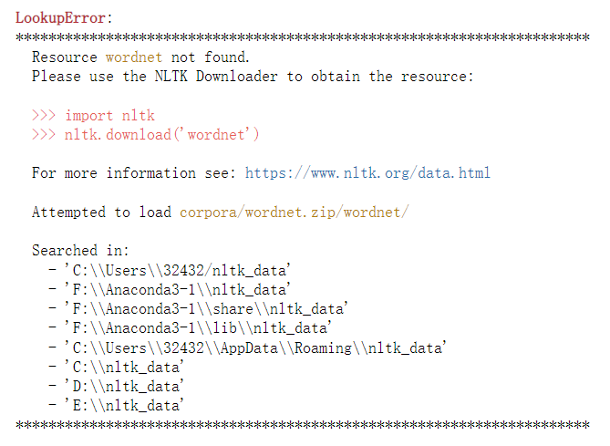 以上就是大气羽毛最近收集整理的关于nltk.download()下载失败问题解决方法一、问题描述二、手动添加资源的全部内容,更多相关nltk内容请搜索靠谱客的其他文章。