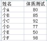 下列代码实现了读取“姓名”和“体质测试”信息,输出“体质测试”考核为A的数量(大于等于85分)并显示相应同学姓名,请你补全代码。