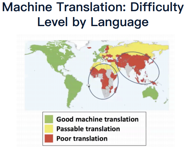 可以看出全球机器翻译的难点在于非英语地区。(废话)
