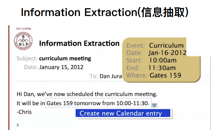 抽取出感兴趣的特征 例如一句话中的时间,地点。。。。