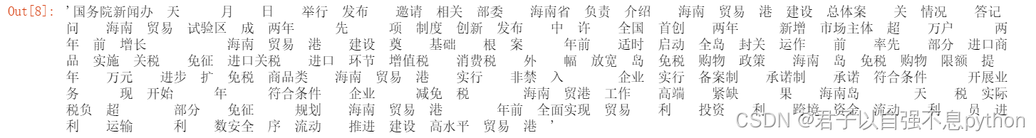 以上就是温柔鸡翅最近收集整理的关于python金融分析小知识(9)——NLP初探之结巴分词停用词的全部内容,更多相关python金融分析小知识(9)——NLP初探之结巴分词停用词内容请搜索靠谱客的其他文章。