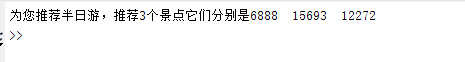 考虑到用户可能有几日游的习惯,我们设置Day变量,下面是假设,假设用户半日游,如下,则给我们推荐3个景点,分别是Sim值较高的前三个POI节点。如下所示: