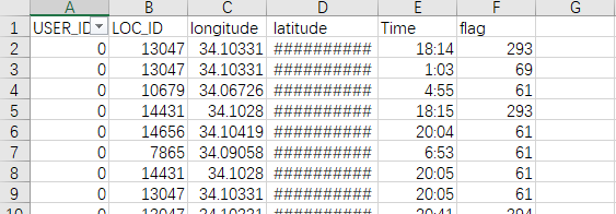 首先我们要进行数据清洗,我们将456967行数据,10000多名用户参与的Gowalla数据进行预处理