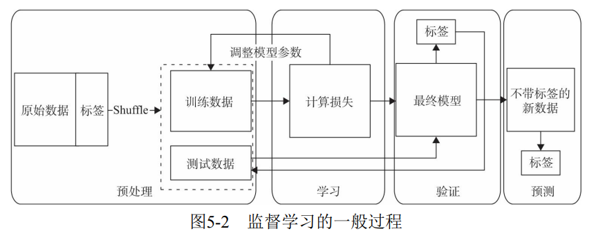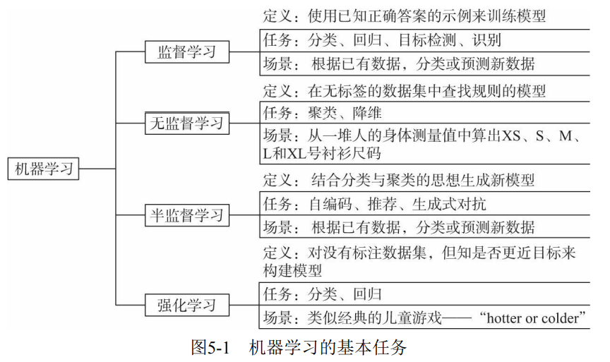 监督学习是最常见的一种机器学习类型,其任务的特点就是给定学习目标,这个学习目标又称标签、标注或实际值等,整个学习过程就是围绕如何使预测与目标更接近而来的。近些年,随着深度学习的发展,分类除传统的二分类、多分类、多标签分类之外,也出现了一些新内容,如目标检测、目标识别、图像分割等监督学习的重要内容。