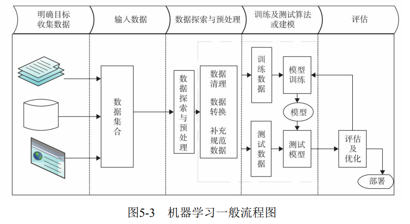 机器学习一般需要先定义问题、收集数据、探索数据、预处理数据,对数据处理后,接下来开始训练模型、评估模型,然后优化模型等步骤。