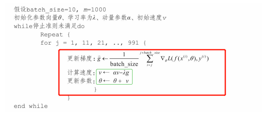 动量(Momentum)是模拟物理里动量的概念,具有物理上惯性的含 义,一个物体在运动时具有惯性,把这个思想运用到梯度下降计算中,可以增加算法的收敛速度和稳定性。动量算法每下降一步都是由前面下降方向的一个累积和当前点的梯度方向组合而成。