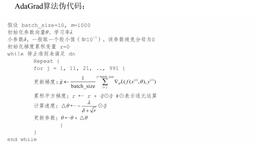 AdaGrad算法是通过参数来调整合适的学习率λ,是能独立地自动调整模型参数的学习率,对稀疏参数进行大幅更新和对频繁参数进行小幅更新。
