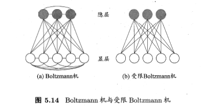 神经网络中有一类模型就是为网络状态定义一个能量,能量最小化时网络达到理想状态,而网络训练就是在最小化这个能量函数。Boltzmann机就是一种“基于能量的模型”。其神经元分为两层:显层与隐层。显层用于表示数据的输入与输出,隐层则被理解为数据的内在表达。Boltzmann机中神经元是布尔型的,只能取0/1两种状态,1表示激活,0表示抑制。若网络中的神经元不依赖于输入值得顺序进行更新,则网络最终达到Boltzmann分布。