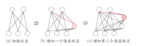 级联相关网络有两个主要成分:“级联”和“相关”,级联是指建立层次连接的层级结构。在开始训练时,网络只有输入层和输出层,处于最小拓扑结构;随着训练的进行,新的隐层神将元逐渐加入,从而创建起层级结构。相关是指通过最大化新神经元的输出与网络误差之间的相关性来训练相关的参数。