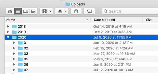 通常,WordPress将所有图像和其他媒体文件存储在/ wp-content / uploads /文件夹中。 为了使其结构合理,所有文件都存储在按年和月组织的文件夹中。