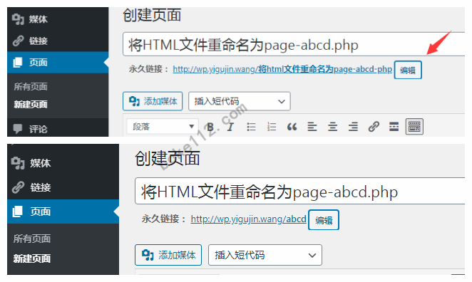 方法二:将 HTML 文件重命名为 page-abcd.php