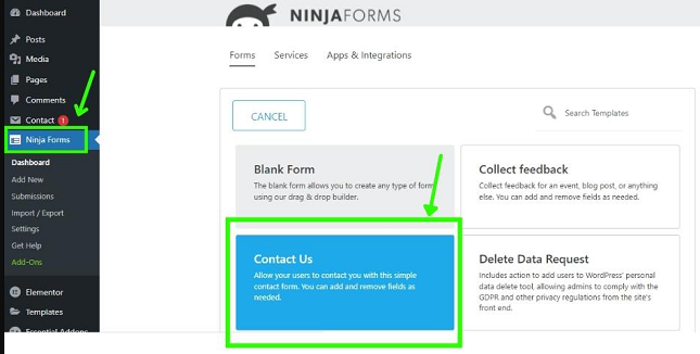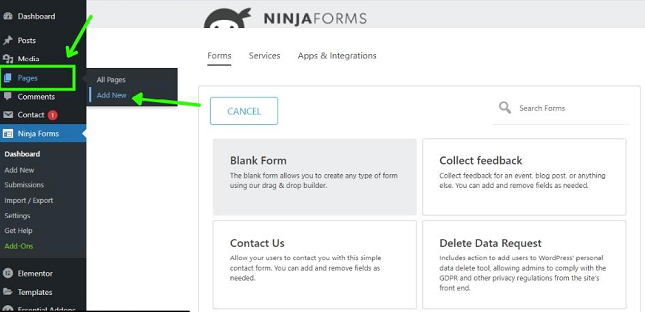 因此,要创建表单,请单击仪表板上的 Ninja Forms 选项。