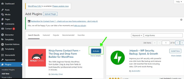 在搜索框中搜索 Ninja forms。你可以选择任何联系人插件。