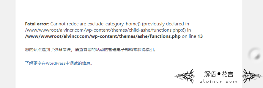 我在子主题function.php添加功能函数后,进入主页出现以下情况: