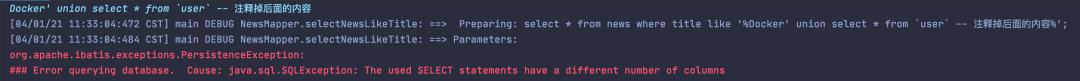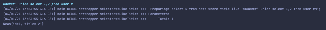 select * from news where title like '%Docker' union select * from `user` -- 注释掉后面的内容%';