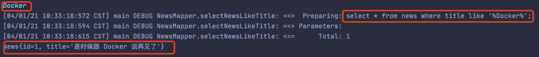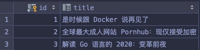 新闻表就三条数据,我以 Docker 作为关键词,正常情况下,应该是这样的返回结果: