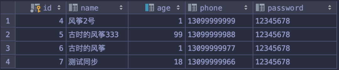 最后执行下来,结果是这样的,四条 user 记录全出来了。