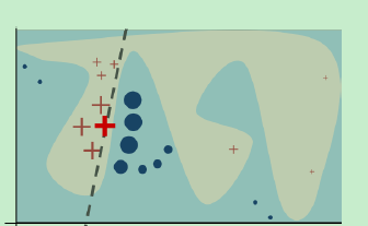 LIME是Local Interpretable Model-Agnostic Explanations的缩写。LIME的目的是试图解释模型在预测样本上的行为,这种解释是可被理解的,并且这种解释是模型无关的,不需要深入到模型内部。作者提出的方法一种局部方法,非全局的,在每个预测样本附近随机采样产生一些样本,就像下图所,红色“x”是预测样本,周边‘*’和圆形样本都是采样得到的。